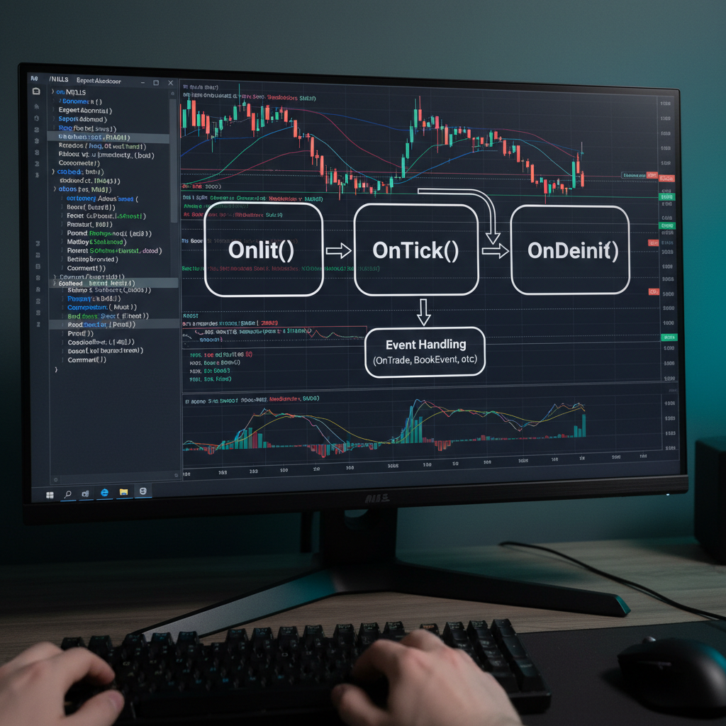 OnInit()is the constructor – validate parameters, allocate resources, prepare to trade.OnDeinit()is the destructor – clean up, possibly close trades, log final state.OnTick()is the engine – called every time the market moves, orchestrating signal logic and order management.
